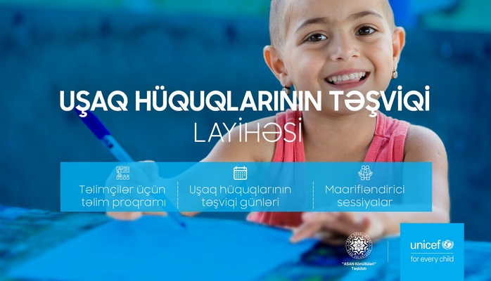 “ASAN Könüllüləri” Təşkilatı və Birləşmiş Millətlər Təşkilatının Uşaq Fondunun Azərbaycan nümayəndəliyinin (UNICEF) birgə əməkdaşlığı ilə “Uşaq hüquqlarının təşviqi” layihəsinin icrasına başlanılır.