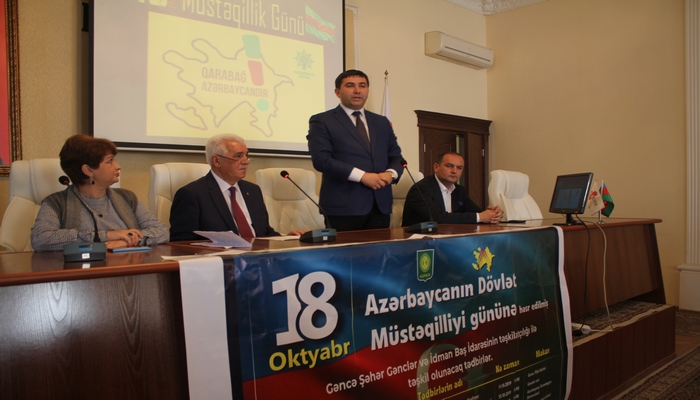 UTECA-da Gəncə şəhər Gənclər və İdman Baş İdarəsi və Azərbaycan Texnologiya Universitetinin təşkilatçılığı ilə 18 oktyabr – Milli Müstəqillik Gününə həsr edilən “Qarabağ Azərbaycandır və nida işarəsi” adlı tədbir keçirilib. Azərbaycan Texnologiya Universitetinin rektoru, professor Akif Süleymanov gənclər qarşısında çıxışında Azərbaycan Respublikasının Prezidenti İlham Əliyevin Soçidə “Valday” beynəlxalq diskusiya klubunda çıxışını xatırladaraq bildirib ki, bu Ermənistanın baş naziri Nikol Paşinyanın işğal altında saxladıqları Dağlıq Qarabağla bağlı 3 ay ərzində verdiyi bəyanatlara, o cümlədən “qərar Azərbaycan, Ermənistan və Qarabağ xalqları üçün qəbuledilən olmalıdır” iddiasına yekun cavab və "Qarabağ Azərbaycanındır və nida işarəsi" ifadəsi ikili standartlar aparanlara tərs sillə idi.