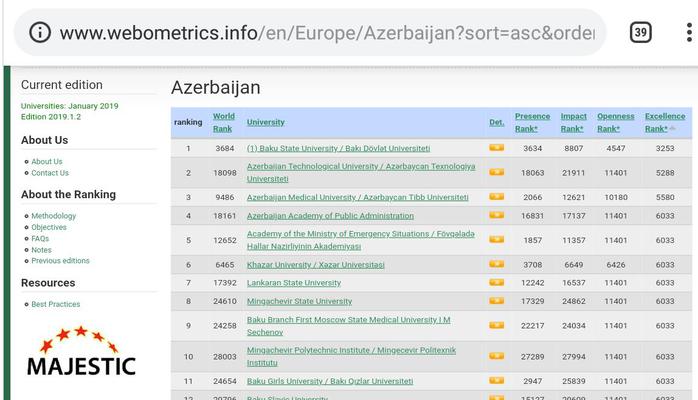 http://www.webometrics.info/en/Europe/Azerbaijan?sort=asc&order=Excellence%20Rank%2A