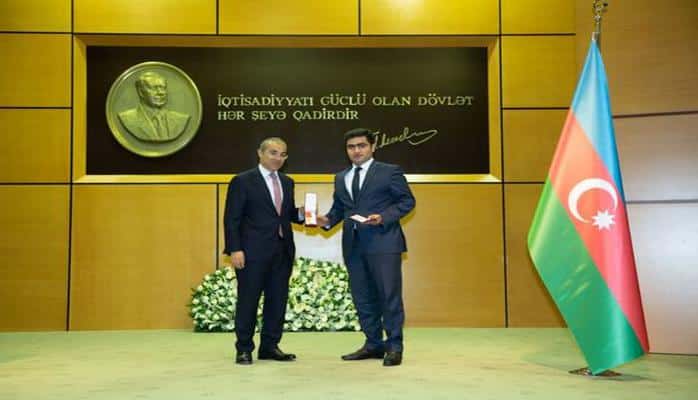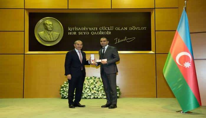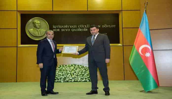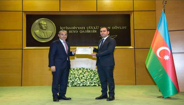 Sonra Prezident cənab İlham Əliyevin sərəncamı ilə ölkədə biznes mühitinin əlverişliliyinin artırılmasına verdiyi töhfəyə, beynəlxalq reytinqlərdə ölkəmizin mövqeyinin daha da yaxşılaşdırılması sahəsindəki səmərəli fəaliyyətinə və vergi sisteminin inkişafında xüsusi xidmətlərinə görə vergi xidməti işçilərinin peşə bayramı ərəfəsində təltif olunmuş Vergilər Nazirliyinin bir qrup əməkdaşına ali dövlət mükafatları – “Vətənə xidmətə görə” ordeni, “Vergi orqanlarında xidmətdə fərqlənməyə görə”, “Tərəqqi” və “Dövlət qulluğunda fərqlənməyə görə” medalları təqdim olunub.