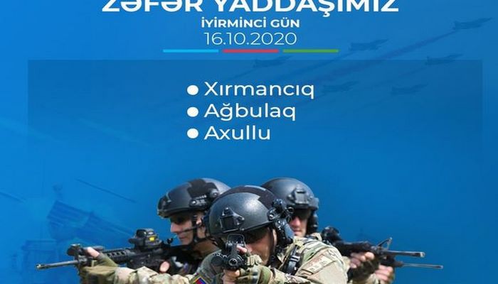 Ens.az Oxu.az-a istinadən xəbər verir ki, 2020-ci il oktyabrın 16-da Azərbaycan ordusu Xocavənd rayonunun Xırmancıq, Ağbulaq və Axulla kəndlərini düşməndən azad edib.