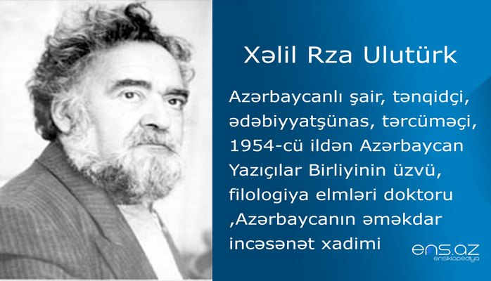 Xəlil Rza Ulutürk - azərbaycanlı şair, tənqidçi, ədəbiyyatşünas, tərcüməçi, 1954-cü ildən Azərbaycan…