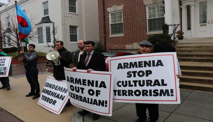 Xocalı soyqırımının ildönümü ilə əlaqədar Ermənistanın Vaşinqtondakı səfirliyi qarşısında etiraz aksiyası…