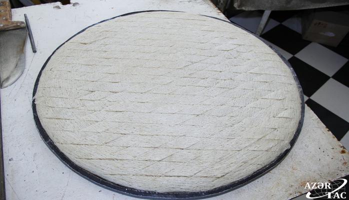 “Quba paxlavasını bişirmək üçün ilk növbədə xəmir yoğrulur. Xəmirin tərkibi yalnız un və sudan ibarət olur. Sonra ərişdə adlanan paxlava layları hazırlanır. Təxminən 50-yə yaxın ərişdə mis siniyə üyüdülmüş qoz ləpəsi ilə birlikdə düzülür. Ardınca ərişdələr paxlava formasında səliqə ilə doğranaraq üzərinə zəfəranlı boya çəkilir. Paxlavanın estetik görünüşlü olması üçün üzərinə qoz ləpəsi qoyulur, sabit temperaturda 20-30 dəqiqə müddətində bişirilir. Hazırlanma prosesi paxlavanın üzərinə qaynar şərbətin tökülməsi ilə yekunlaşır”, -deyə M. Talıbov bildirir.