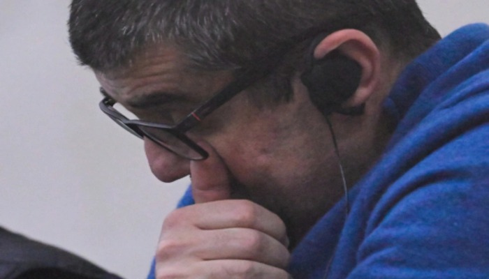 Görüntüləri izləyən təqsirləndirlən Arayik Arutyunyan özünü guya kədərlənmiş kimi göstərib.