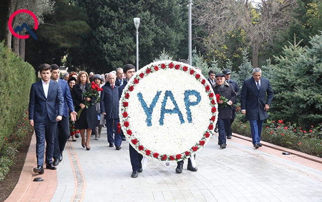 YAP rəhbərliyi Heydər Əliyevin məzarı önünə gül dəstələri düzüb.