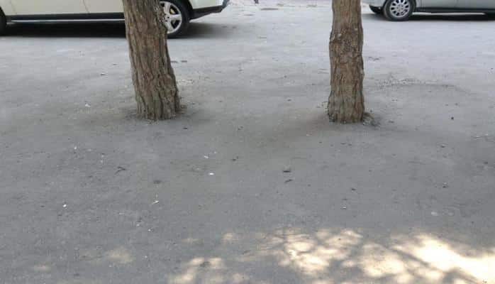 Bakının Yasamal rayonunda ağacların diblərini asfaltlayıblar.