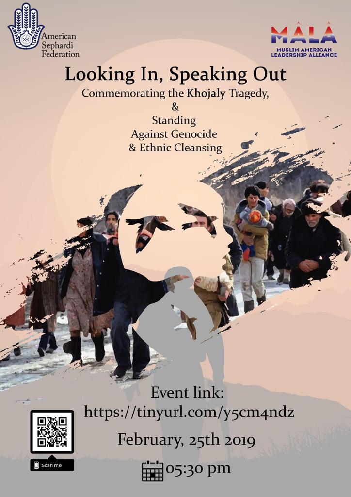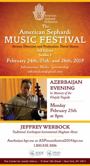 Diasporla İş üzrə Dövlət Komitəsindən Modern.az-a bildirilib ki, 25 fevral 2019-cu il tarixində ABŞ-ın Nyu-York şəhərində yerləşən Yəhudi Tarixi Muzeyində Amerika Sefardlar Federasiyası, Amerika Müsəlmanları Liderləri İttifaqının birgə təşəbbüsü və təşkilatçılığı, eləcə də Diasporla İş üzrə Dövlət Komitəsinin dəstəyi ilə Xocalı soyqrımına həsr edilmiş “Nəzər yetirmək və danışmaq: Xocalı qırğınını yad etmək, soyqırımı və etnik təmizləməyə qarşı mübarizə aparmaq” adlı tədbir, həmçinin amerikalı musiqiçi Cefri Verbokun ifasında muğam gecəsi baş tutacaq.