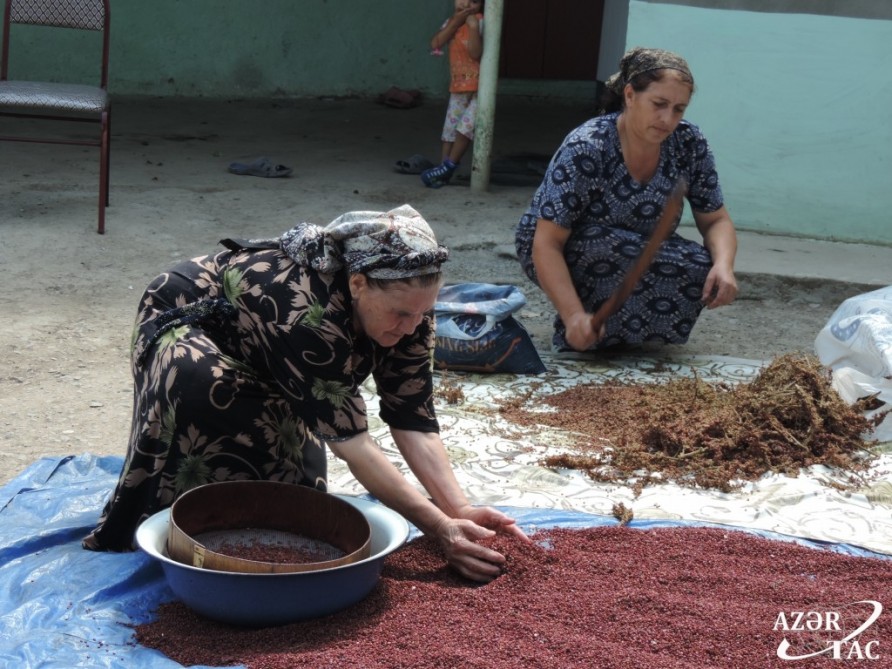 “Sumaq ağacdan yığıldıqdan sonra bir müddət qurudulur. Sonra həmin xammal döyülür və meyvələr zoğdan ayrılır. Meyvələr ikinci dəfə tam quruyanadək saxlanıldıqdan sonra yenidən emal olunur. Bunun üçün meyvələr xüsusi torbalara doldurularaq toxumlarından ayrılanadək əzilir. Əldə edilən məhsul ələkdən keçirildikdən sonra hazır vəziyyətə gəlir” - deyə Nəsibə Həlimova AZƏRTAC-ın bölgə müxbirinə müsahibəsində deyib.