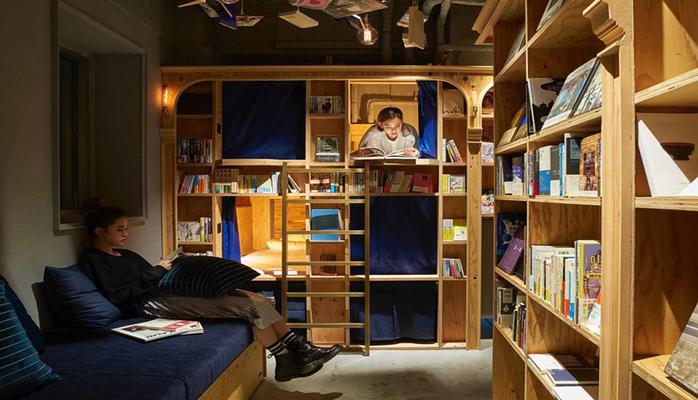 Yaponiyanın Kioto şəhərində "The Book and Bed Tokyo-Kyoto" hostelində yataq yerləri kitab rəfləri ilə təchiz edilib.