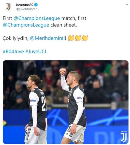 İtaliya klubu qarşılaşmadan 0-2 hesabı ilə qalib ayrılıb. Oyundan sonra “Yuventus” Merihə jest edərək türk dilində paylaşım edərək “Çox yaxşı idin” qeydini yazıb.