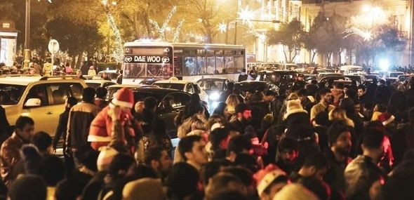 İnsanlar Bakıda yeni ili keçirmək üçün Azərbaycanın müxtəlif rayonlarından, eləcə də bir çox xarici ölkələrdən gəliblər.