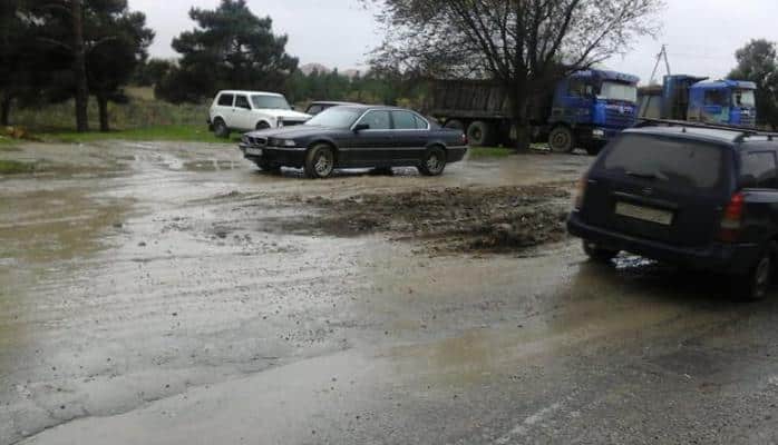 Kadrlara əsasən yolun qəsəbənin S.Əliyev küçəsindən keçən hissəsində nəhəng çökmələr baş verib, yol praktiki olaraq keçilməz olub. Belə çökmələrdən birinə kimsə gil-torpaq töküb və yağan yağış nəticəsində həmin yerdə dərin bataqlıq yaranıb.