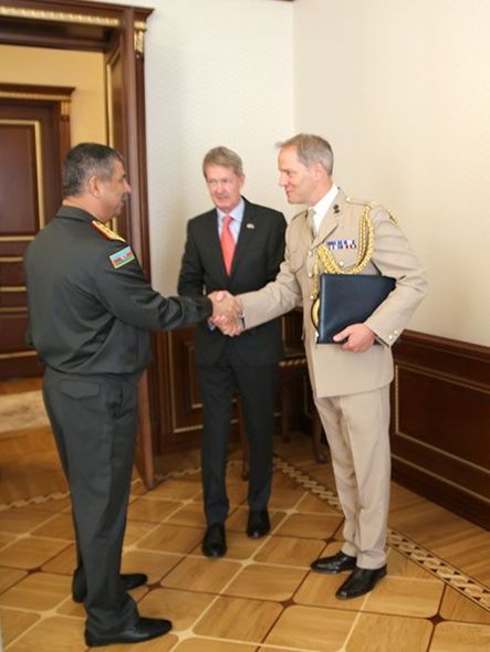 Sonra britaniyalı diplomat ölkəsinin Azərbaycanda yeni təyin olunmuş hərbi attaşesi polkovnik-leytenant Entoni Bramveli Müdafiə nazirinə təqdim edib.