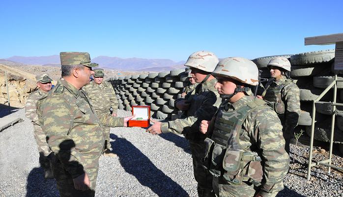 General-polkovnik Z.Həsənov ön xətdə əsgər və zabitlərlə görüşüb, xidmətin təşkili ilə maraqlanıb, xidmətdə fərqlənən bir qrup hərbi qulluqçuya qiymətli hədiyyələr təqdim edib.