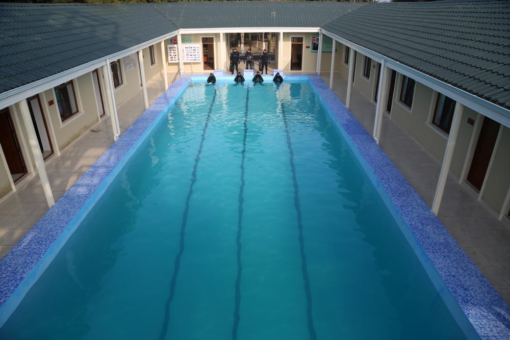 Sonra Müdafiə naziri yenidən bərpa olunmuş müasir standartlara cavab verən Dalğıc Təlim Poliqonunda olub. Məruzə olunub ki, poliqon xüsusi təyinatlıların dalğıc hazırlığı üzrə normativləri və sualtı döyüşün aparılması vərdişlərini məşq etdirmələri üçün nəzərdə tutulub. İnfrastruktura baxış keçirən Müdafiə naziri ərazidə yenidən qurulan hovuz, gəmi və qayıq avadanlıqları kompleksi, barokamera otağı, dalğıc cihazlarına texniki qulluq emalatxanası, suyadalma üçün universal qüllə və müxtəlif məqsədli sinif otaqlarında yaradılmış şəraitlə də tanış olub.