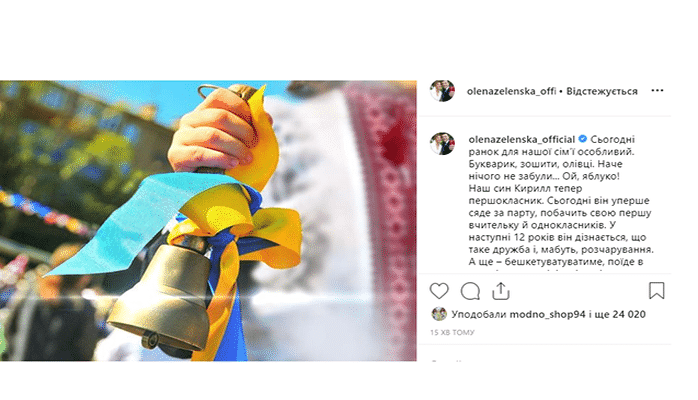 “Oğlumuz Kirill artıq birinci sinif şagirdidir. O, bu gün parta arxasında əyləşəcək, özünün ilk müəllimini və sinif yoldaşlarını görəcək. O, son 12 ildə dostluğun və məyusluğun nə olduğunu dərk edib. Həm də yaramaz olacaq, ilk səyahətlərini valideynlərsiz davam etdirəcək, daha mülayim xarakterli və məsuliyyətli olmağa başlayacaq. Kiril yalnız tədris planını öyrənməyəcək, həm də dəyişikliklərin baş tutacağı ölkədə yaşamağı öyrənəcək. Uşaqlar bizim gələcəyimizdir. Onlar sovet məhdudiyyətlərinin və mənasız əzbərləmənin nə olduğunu bilmirlər”, - deyə “First lady” yazıb.
