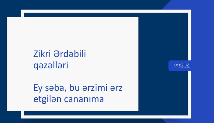 Zikri Ərdəbili - Ey səba, bu ərzimi ərz etgilən cananıma