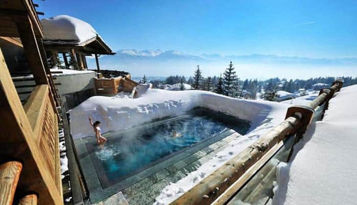Небольшой отель Le Crans в глубине Швейцарских Альп может предложить гостям уникальное развлечение - бассейн с подогревом под открытым небом, в котором можно искупаться в любое время года.