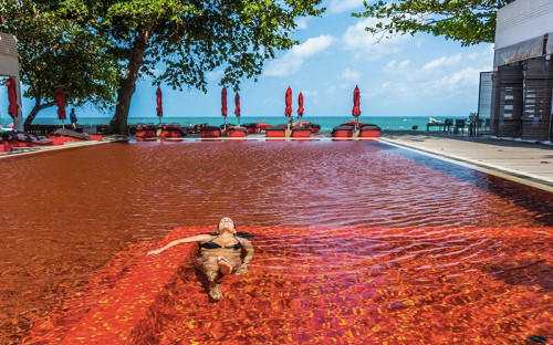 Один из самых необычных бассейнов в мире расположен в бутик-отеле The Library на острове Самуи. Вода в бассейне прозрачная, но плитка оранжевого, красного и желтого цветов, которой выложено дно, создает немного жутковатый эффект "крови".