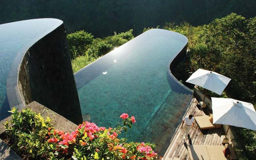 Именно отсюда пошла мода на панорамные бассейны-инфинити. 38 бассейнов-террас расположены на склоне холма, откуда открывается потрясающий вид на реку Аюнг, тропические джунгли и древний храм Пура Пенатаран Далем Сигара.