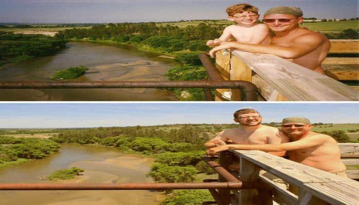 17. «У нас с отцом появилась возможность повторить путешествие, которое мы совершили c ним 15 лет назад, и я решил воссоздать фотографию из тех дней»