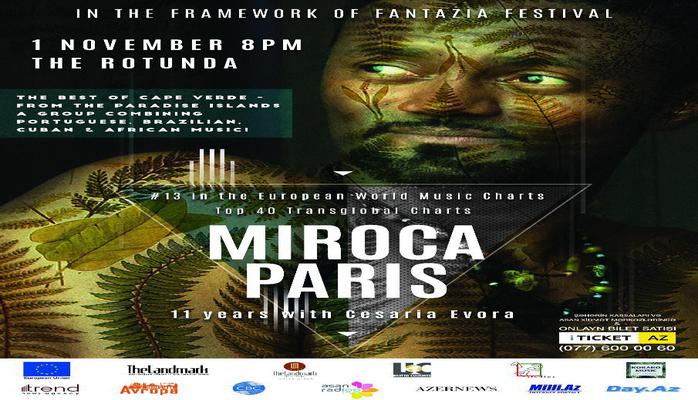 Мирока Париш родом из Кабо-Верде (Острова Зеленого Мыса). В своем творчестве он синтезирует мотивы Португалии, Бразилии, Кубы и стран Африки. Мирока начинал свою карьеру с рока, но стал известен в качестве ударника оркестра известной певицы с островов Зеленого Мыса Сезарии Эворы. Он принимал участие и в проектах Сары Таварес и Грейс Эворы - других участниц проектов и "наследниц" великой примы. Мирока Париша называют "африканским Стингом". Бакинского зрителя ждет колоритная музыка слияния Африки, Латинской Америки и Европы: коладейра, кизомба, финана, семба, самба в исполнении одного из лучших перкуссионистов.