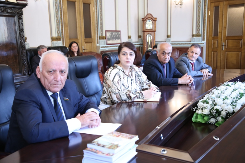 На встрече также приняли участие начальники управлений аппарата Президиума НАНА - доктор философии по биологии, доцент Эсмира Алирзаева и Зульфугар Фарзалиев, а также ученые Института истории НАНА.