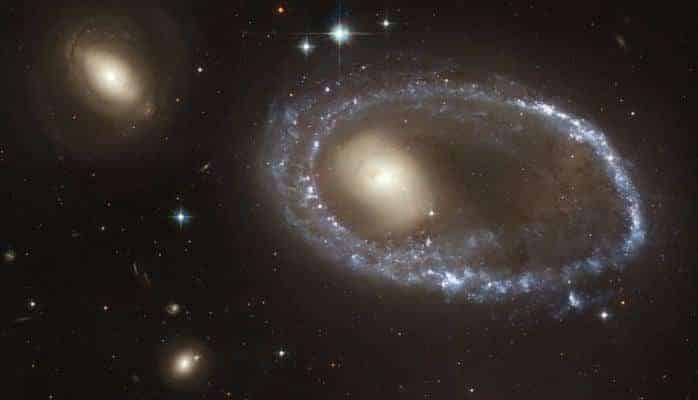 Космическое кольцо образовалось после того, как расширяющееся газовое кольцо от столкновения двух галактик запустило процесс рождения новых звезд. Подобные кольцевые структуры — настоящая радость для астрономов. С их помощью весьма удобно изучать механизмы формирования двойных звездных систем и поведение ULXs.