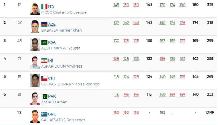 Тармерхан поднял в общей сложности 316 кг (142 кг + 174 кг). Первое место занял итальянский спортсмен, третье – представитель Саудовской Аравии.