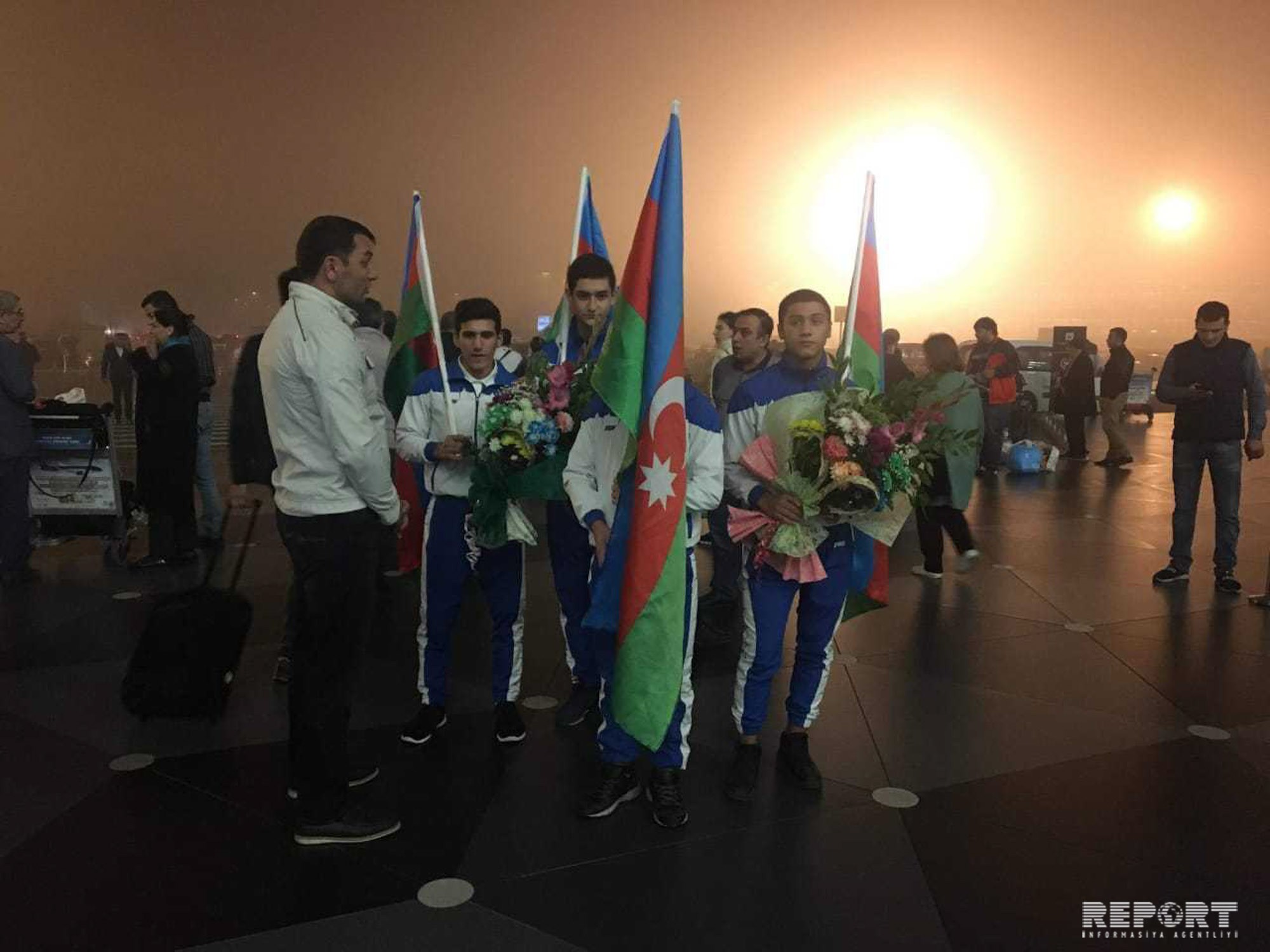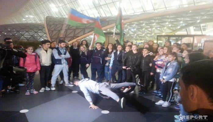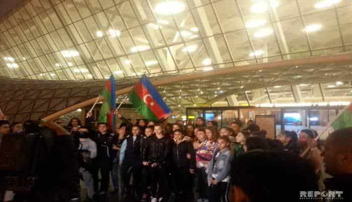 Как передает Report, азербайджанскую делегацию в Международном аэропорту Гейдар Алиев приветствовали представители спортивного сообщества, журналисты, родственники спортсменов и другие.