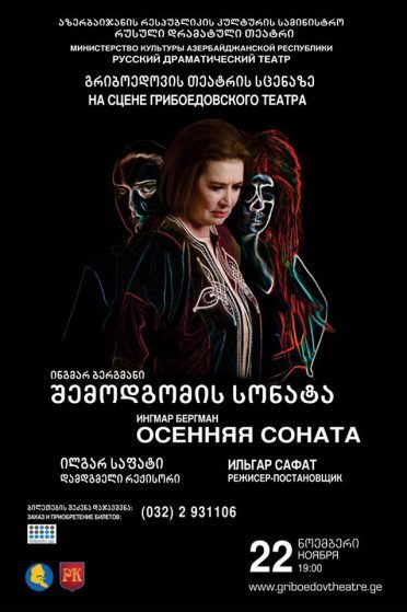 Как сообщает грузинское бюро Report, театр покажет на сцене Тбилисского русского драматического театра имени А.С.Грибоедова спектакль "Осенняя соната" по пьесе И.Бергмана. Режиссёр-постановщик - Ильгар Сафат.