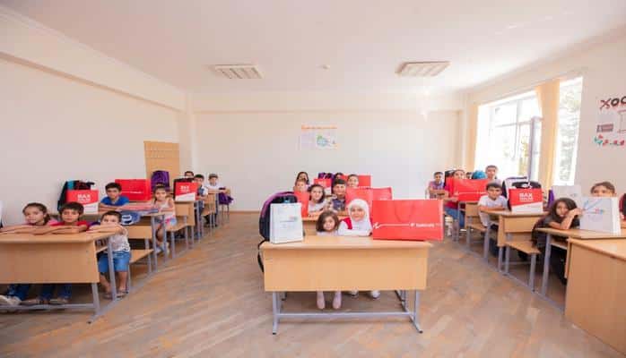 На специально организованном мероприятии, прошедшем с участием представителей компании Bakcell и волонтеров ASAN, более 50 учащихся 1-9 классов получили в подарок портфели и другие школьные принадлежности.