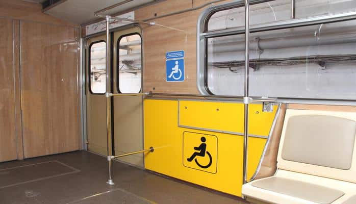 Как сообщается, инвалидные коляски крепятся в головном вагоне состава, около кабины машиниста. Такими креплениями уже оснащено 30 составов.