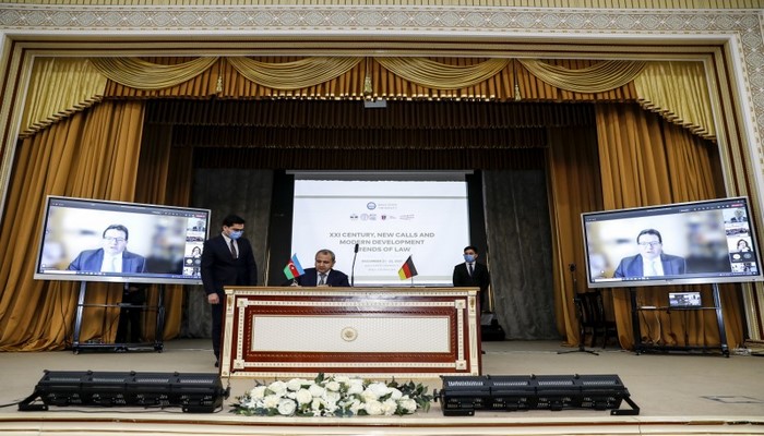 В Бакинском государственном университете (БГУ) на церемонии открытия Международной научной конференции на тему «Новые вызовы XXI века и современные тенденции развития в области права» БГУ и Университет Галле-Виттенберг имени Мартина Лютера Германии заключили Договор о сотрудничестве по программе двойного диплома на уровне магистратуры. Документ подписали ректор БГУ Эльчин Бабаев и ректор Университета Галле-Виттенберг Кристиан Титье.