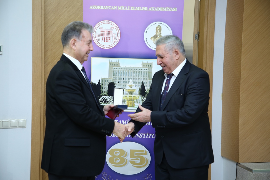 На юбилейном мероприятии сотрудникам Института литературы были вручены награды, которых они были удостоены по Распоряжению Президента Азербайджанской Республики по случаю 85-летнего юбилея института.