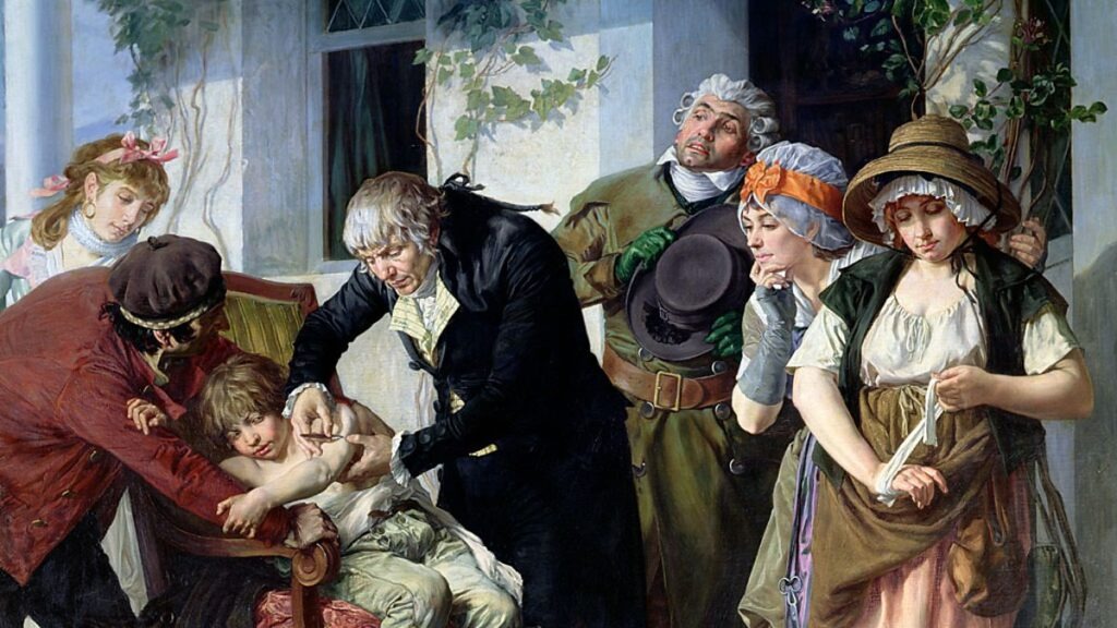 «Первая прививка в 1796 году в исполнении Эдварда Дженнера была совсем не похожа на то, что мы привыкли видеть в современных прививочных кабинетах. Английский врач просто втер содержимое гнойничков женщины, заразившейся коровьей оспой, в царапину на теле пациента. Долгое время так поступали и его последователи.
