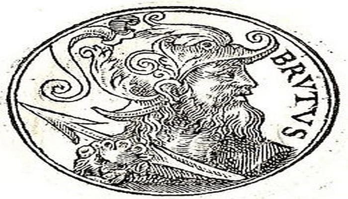 Упоминания о Бруте, основавшем Британию, впервые встречается в сочинении 9 века валлийского историка Ненния «История бриттов». Затем легенда получила развитие и обросла деталями в трактате 12 века «История королей Британии» авторства Гальфрида Монмутского. Точно неизвестно, кем приходился Брут Троянский герою Энею, внуком или правнуком, но Монмутский был убежден, что вторым. Его отец, Сильвиус, царь Альбы-Лонги (города в Италии), пытался выпытать у чародея судьбу еще нерожденного ребенка, и тот ответил, что у него родится сын, который будет храбрым и великим, однако станет причиной гибели обоих родителей.