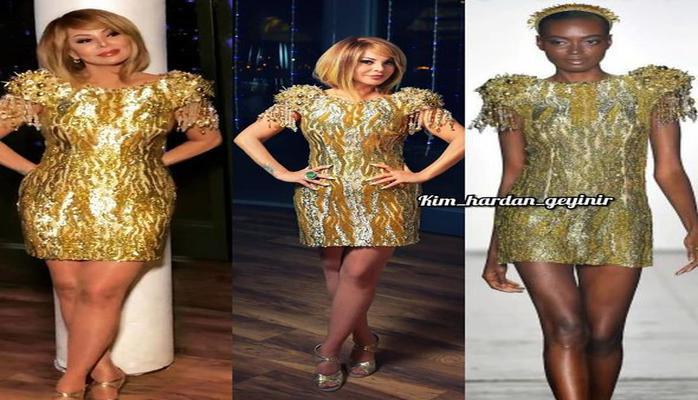 Часто меняющая свой имидж поп-дива отечественной сцены, народная артистка Айгюн Кязымова привлекла внимание на одной из вечеринок своим платьем. Короткое золотистое платье с бусами и различными украшениями принадлежи