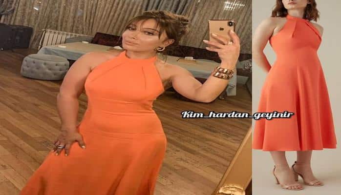 На другой исполнительнице Гюнай Ибрагимли мы видим длинное платье оранжевого цвета. Этот легкий и простой сарафан бренда Karren Millen стоит 483 маната.
