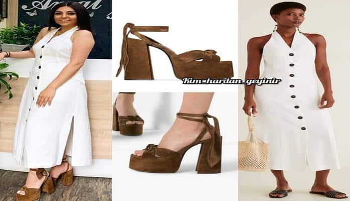 Ханенде Гюлай Зейналлы также привлекает внимание своей стильной одеждой. На этот раз она приобрела за 109 манатов белый сарафан с разрезами по бокам и пуговицами впереди бренда Mango. На ногах красуются коричневые босоножки на высоком устойчивом каблуке марки Yves Saint Laurent за 1 тысячу 479 манатов.