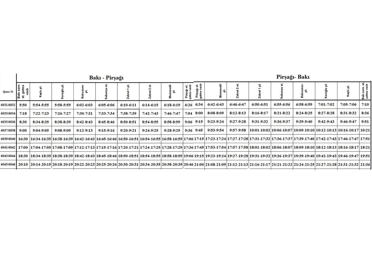 На текущем этапе из Баку в Пиршаги и обратно будут следовать восемь поездов в день. С тарифами и графиком движения поездов можно ознакомиться на приложенной таблице.