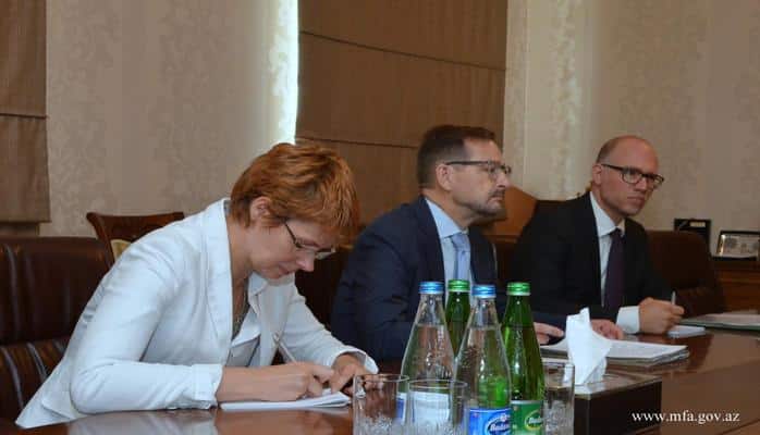 Мамедъяров подчеркнул большое значение, которое Азербайджан придаёт сотрудничеству с ОБСЕ как региональной организацией. Отметив основополагающий принцип неделимости безопасности в рамках ОБСЕ, Эльмар Мамедъяров заявил о важности того, чтобы все государства-члены были привержены своим обязательствам по Хельсинкскому Заключительному акту. В этой связи министр подчеркнул, что Армения, грубо нарушив взятые на себя в качестве государства-члена ОБСЕ обязательства, проистекающие из Хельсинкского Заключительного акта, путём применения силы продолжает оккупацию территорий Азербайджана: региона Нагорного Карабаха и прилегающих к нему административных районов. Министр, указав, что ОБСЕ с момента своего учреждения была вовлечена в урегулирование армяно-азербайджанского конфликта, заявил о необходимости интенсификации усилий по изменению статус-кво, основанного на оккупации, и по выводу войск Армении с захваченных ею территорий Азербайджана. Эльмар Мамедъяров добавил, что незаконное присутствие вооружённых сил Армении на оккупированных территориях Азербайджана остаётся первостепенной угрозой для регионального мира и безопасности. Напоминая, что мандат сопредседателей Минской группы ОБСЕ был сформирован на базе соответствующих резолюций Совета Безопасности ООН и Хельсинкского Заключительного акта, министр подчеркнул, что Азербайджан готов к субстантивным и интенсивным переговорам по достижению прогресса в урегулировании конфликта и обеспечению прочного и справедливого мира в регионе. Мамедъяров поделился информацией о проделанной Азербайджаном работе по налаживанию экономического сотрудничества и каналов коммуникации (connectivity), а также по обеспечению возможностей мультимодальной транспортной инфраструктуры, охватывающей регион и более широкое пространство ОБСЕ. В связи он отметил маршруты транспортировки грузов по коридорам "Восток-Запад", "Север-Юг", "Юг-Запад" и уже запущенную в эксплуатацию железнодорожную линию Баку-Тбилиси-Карс. Министр добавил, что подобные проекты, реализованные при участии и по инициативе Азербайджана, способствуют экономическому развитию и процветанию на пространстве ОБСЕ, а также укреплению регионального мира и безопасности. В ходе встречи состоялся обмен мнениями о потенциале использования ОБСЕ в качестве подходящей платформы для продвижения и экспертной поддержки вышеупомянутых проектов и прочих инициатив, представляющих интерес с точки зрения поощрения экономического сотрудничества. Была отмечена роль парламентской дипломатии в развитии связей и в этой связи высоко оценено сотрудничество с Парламентской Ассамблеей ОБСЕ. На встрече также были рассмотрены программы сотрудничества между Азербайджаном и ОБСЕ.
