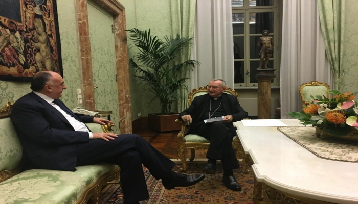 В рамках официального визита в Святой Престол министр иностранных дел Азербайджана Эльмар Мамедъяров встретился с государственным секретарем Святого Престола, кардиналом Пьетро Паролином, сообщает Trend со ссылкой на пресс-службу МИД.