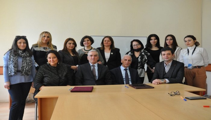 В церемонии подписания приняли участие ректор Академии телевидения и радио Телли Алиева, проректор Алмаз Насибова, декан факультета журналистики БГУ Вугар Алиев и заведующие кафедрами.