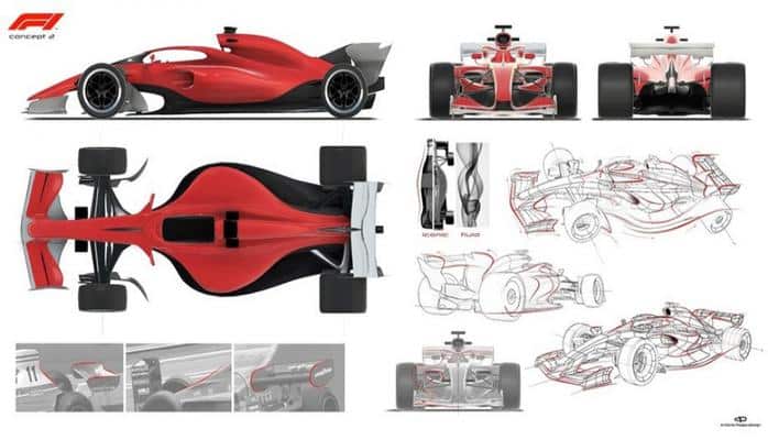 В первой концепции основной упор делается на более изящное вписание системы защиты головы «гало» в дизайн машины. Вторая концепция более агрессивная и детальная, и в ней дополнительно учитывается грядущий переход Формулы 1 на 18-дюймовые шины. Третья концепция наиболее современная, и в ней показаны первые версии аэродинамических элементов, позволяющих контролировать грязный поток воздуха от колес.