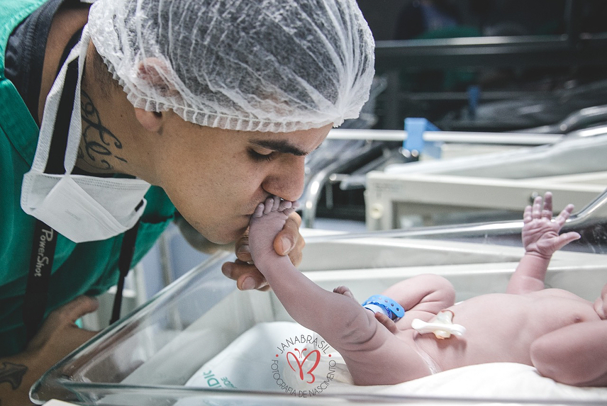 На снимке запечатлён отец, который молится у кроватки новорождённого сына в бразильском роддоме. Фото было сделано сразу после рождения малыша.