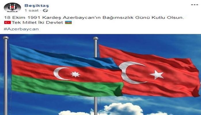 Турецкий футбольный клуб "Бешикташ" сделал публикацию на своих страницах в социальных сетях в связи с 18 октября - Днем независимости Азербайджана.