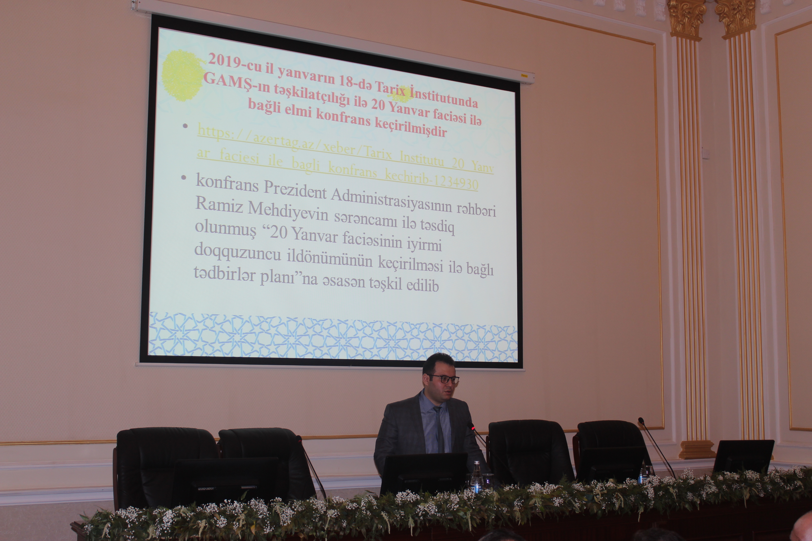 Затем председатель Совета молодых ученых и специалистов Института истории Рашад Мустафа представил доклад совета и рассказал о планах на будущее. Рашад Мустафа отметил, что совет реализует среди школьников проект «Сохраним память о наших исторических личностях». По словам историка, «в прошлом году Совет молодых ученых и специалистов института провел первую республиканскую научную конференцию молодых историков и на повестке стоит проведение международной конференции молодых историков. Историкам важно знать иностранные языки», - подчеркнул Рашад Мустафа.
