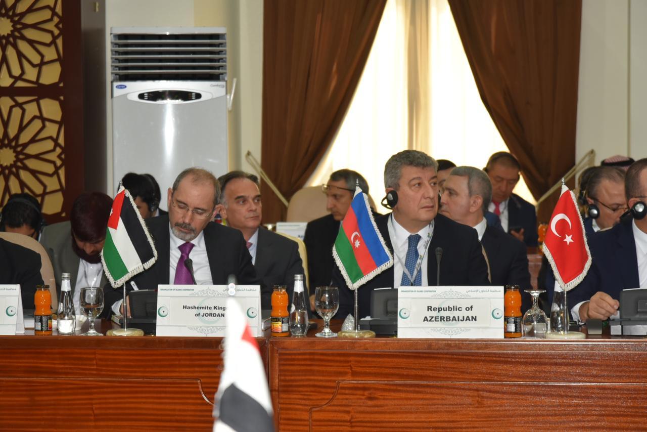 Выступая в ходе заседания, Гасанов сказал, что Азербайджан всегда демонстрировал солидарность в палестинском вопросе и поддерживает справедливое и всестороннее решение палестинского вопроса на основании "принципа двух государств". Было отмечено, что Азербайджан привержен принципу решения "два государства", опирающегося на международное право и резолюции ООН.